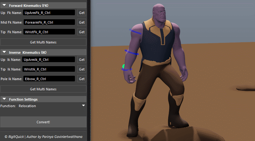 Python script for Maya. Tool for Relocating about FK and IK controls.